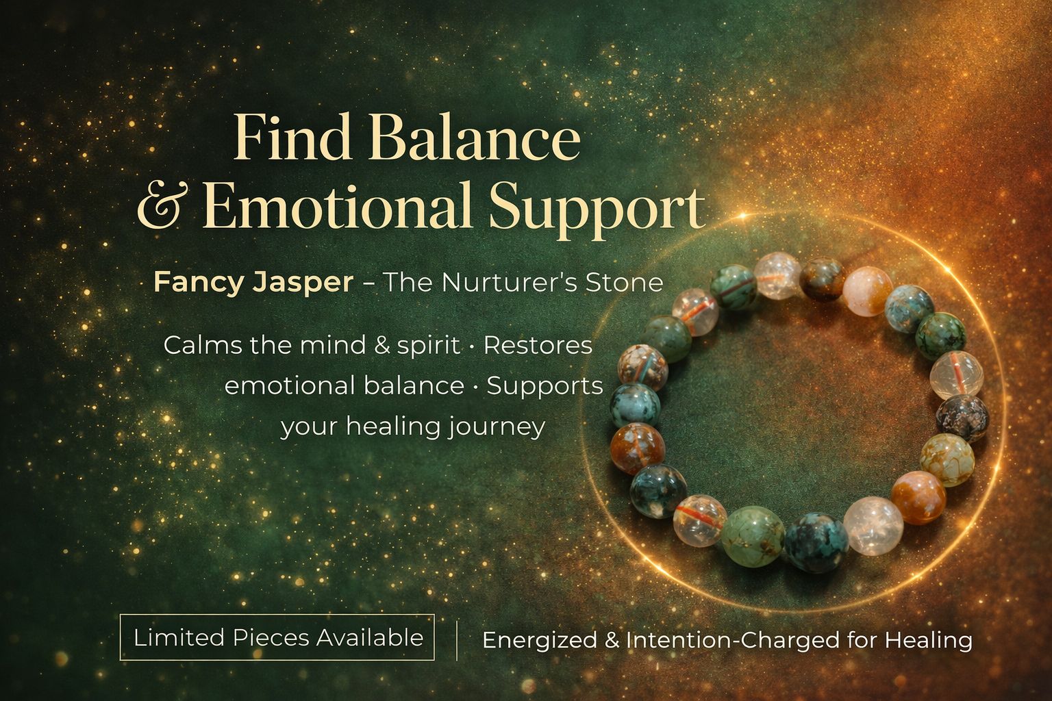 Fancy Jasper works like an emotional anchor, calming restless thoughts, soothing your nervous system, and restoring harmony between your mind, body, and spirit.