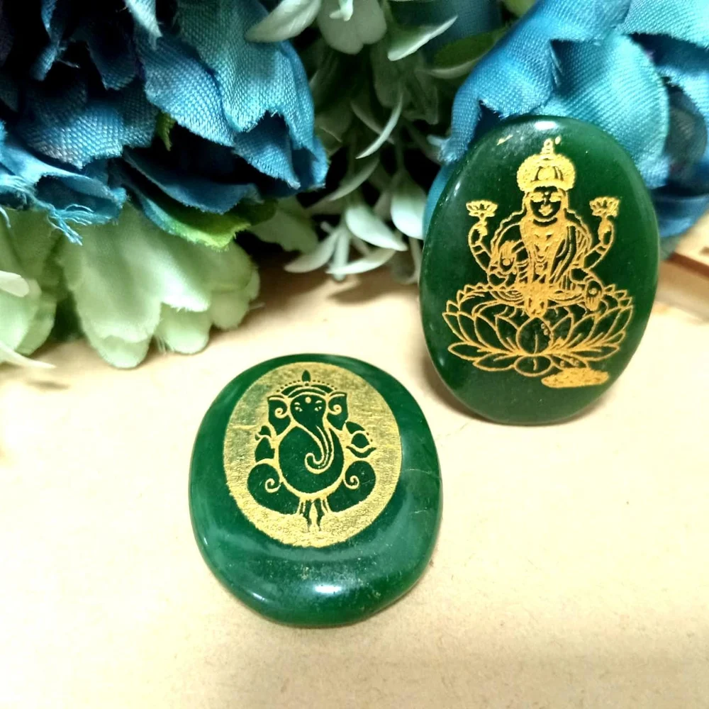 Celebrate the festival of lights with our exquisite Lakshmi Ganesh Green Jade Crystal Coins, thoughtfully designed for Diwali and auspicious gifting. These coins feature the divine presence of Goddess Lakshmi, the symbol of wealth and abundance, and Lord Ganesh, the harbinger of wisdom and new beginnings.