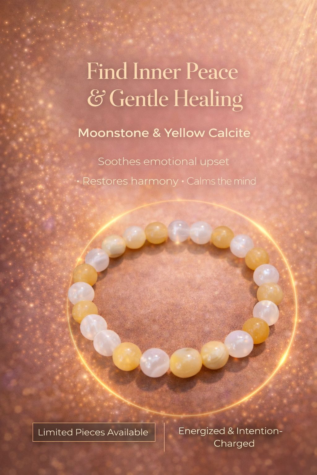 This delicate and soothing bracelet is a beautiful fusion of Moonstone and Yellow Calcite, designed to bring deep emotional calm, inner harmony, and soft healing energy into your life.