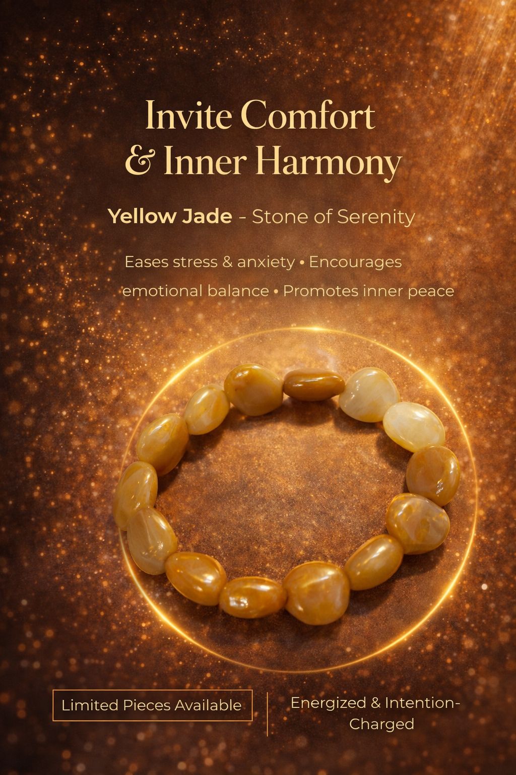 Yellow Jade is a warm, nurturing crystal that carries the energy of peace, emotional stability, and inner harmony. Its soft golden-yellow tones reflect the energy of calm sunlight—gentle, comforting, and deeply healing for the mind and heart.